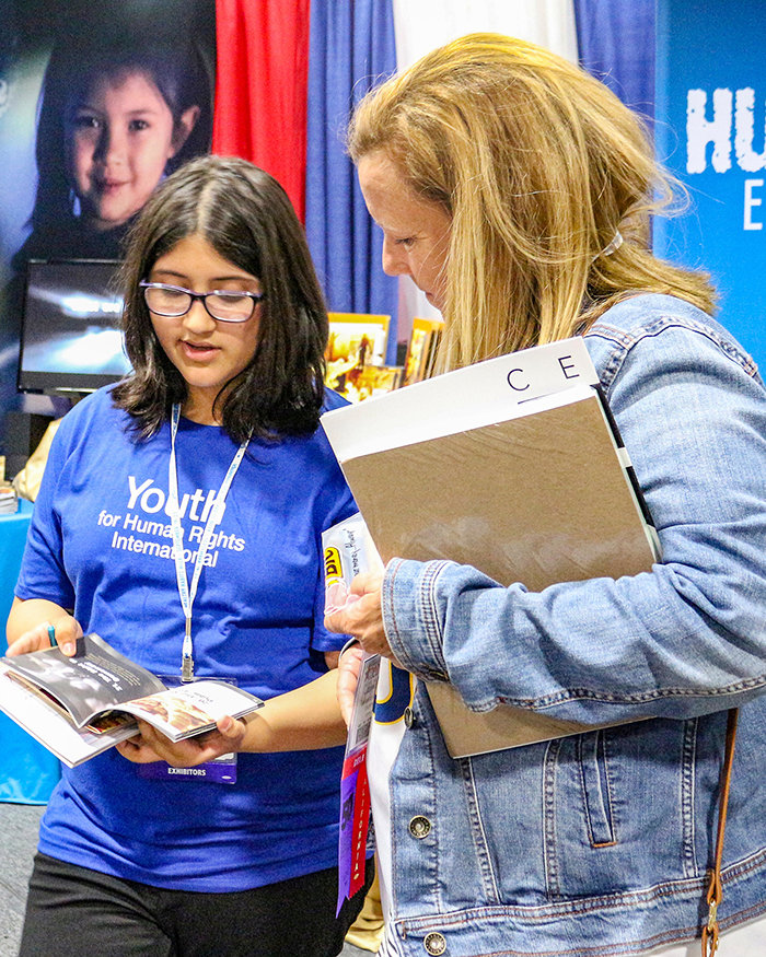 Per esempio, una squadra di volontari di Uniti per i Diritti Umani esponeva uno stand al convegno annuale del Consiglio Nazionale degli Studi Sociali e l’informazione è giunta a 430 insegnanti provenienti da un capo all’altro degli Stati Uniti, i quali hanno trovato che i materiali erano di valore inestimabile.