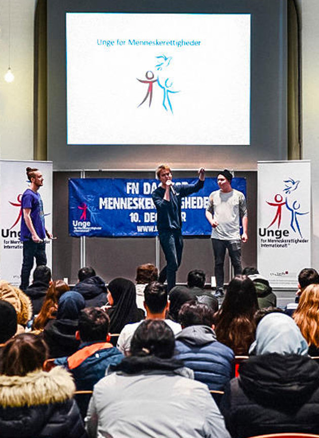 Il 10 dicembre 1948 l’Assemblea Generale delle Nazioni Unite adottò la Dichiarazione Universale dei Diritti Umani che esprime i 30 diritti di ogni essere umano. Ogni anno il 10 dicembre, gruppi di tutto il mondo di Uniti per i Diritti Umani e Gioventù per i Diritti Umani tengono manifestazioni e attività in onore di questo giorno.
